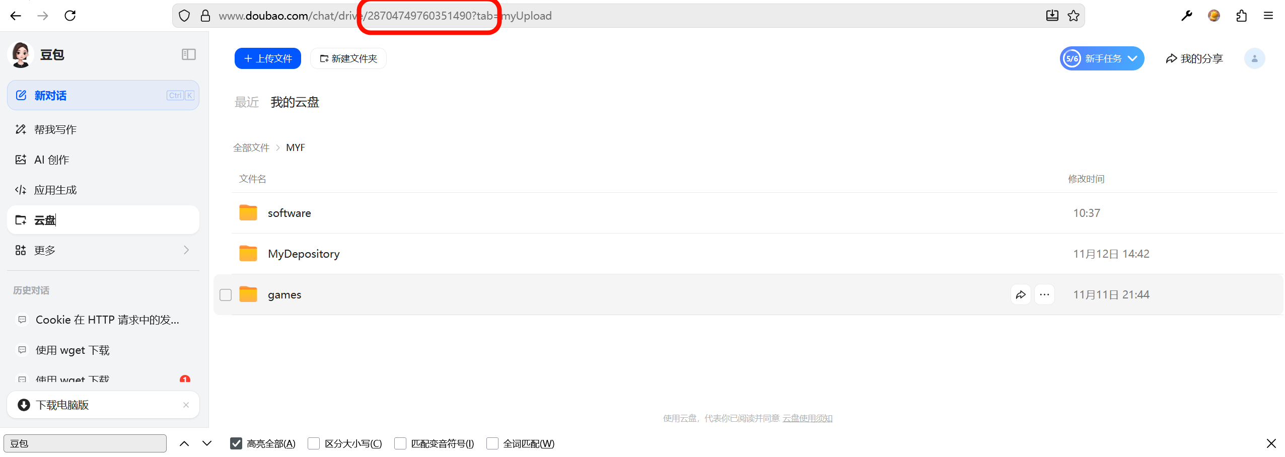 在豆包云盘里打开一个目录,这个pathvariable就是目录id