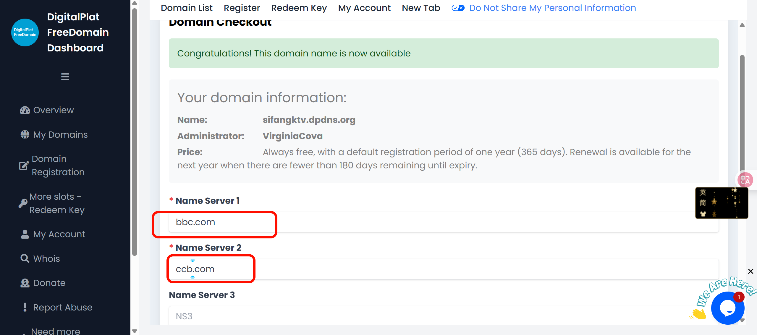 - 免费域名注册 digitalplat:https://dash.domain.digitalplat.org/auth/register