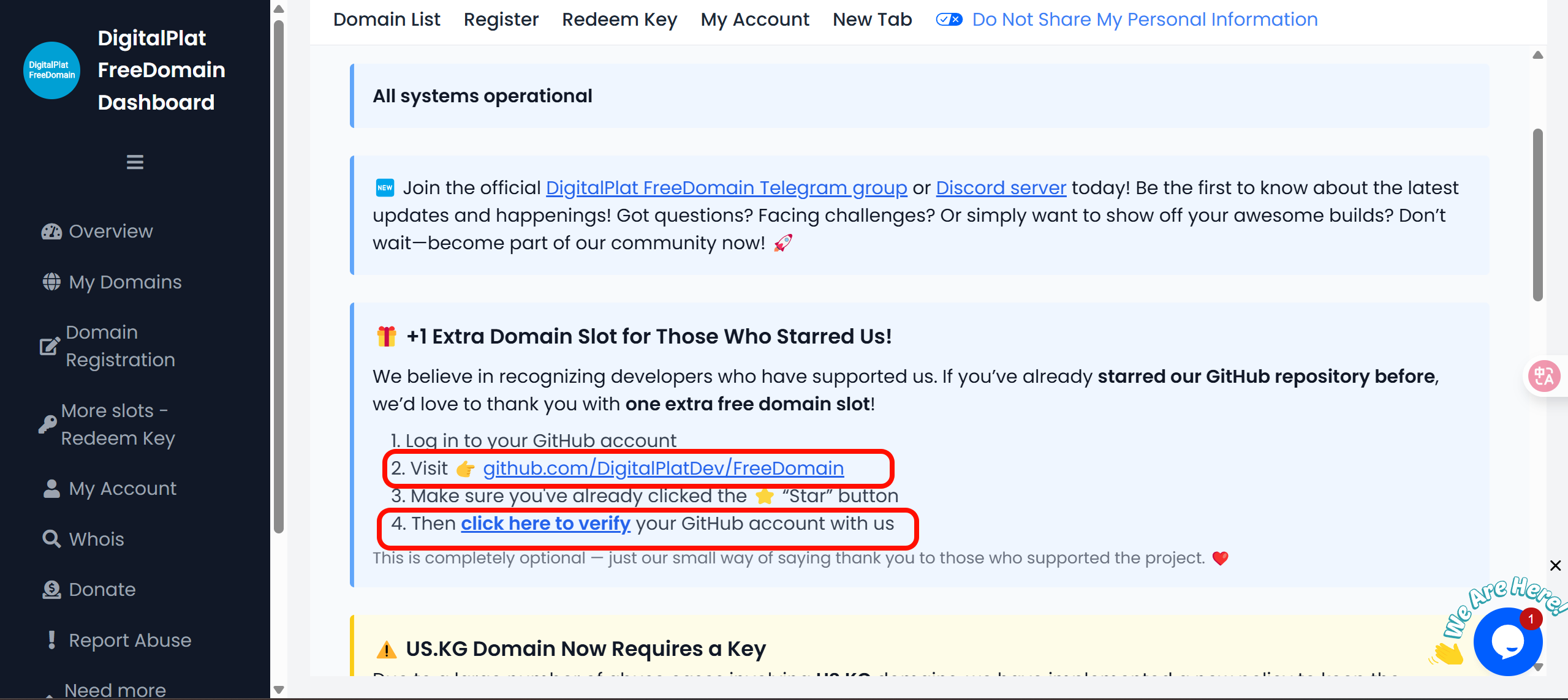 白嫖域名额度:进入GitHub,给这个项目点一个start,再点击verified。就可以拥有两个域名的额度