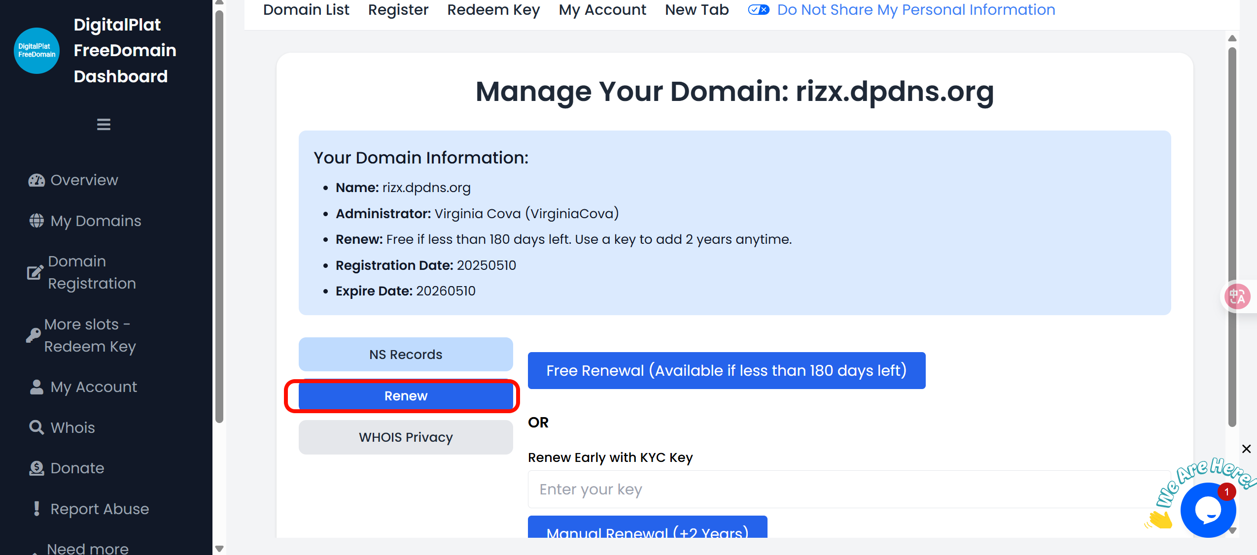 域名时长的有效期是一年,需要在剩余180天内免费续费