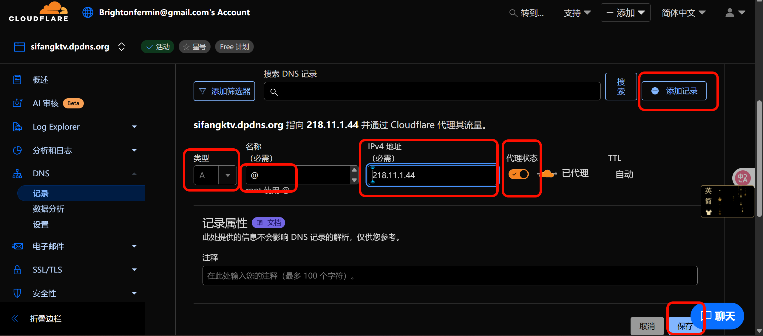 点击DNS记录