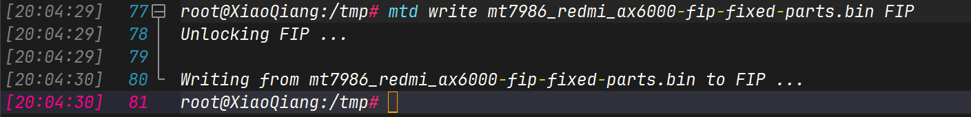 mtd write mt7986_redmi_ax6000-fip-fixed-parts.bin FIP