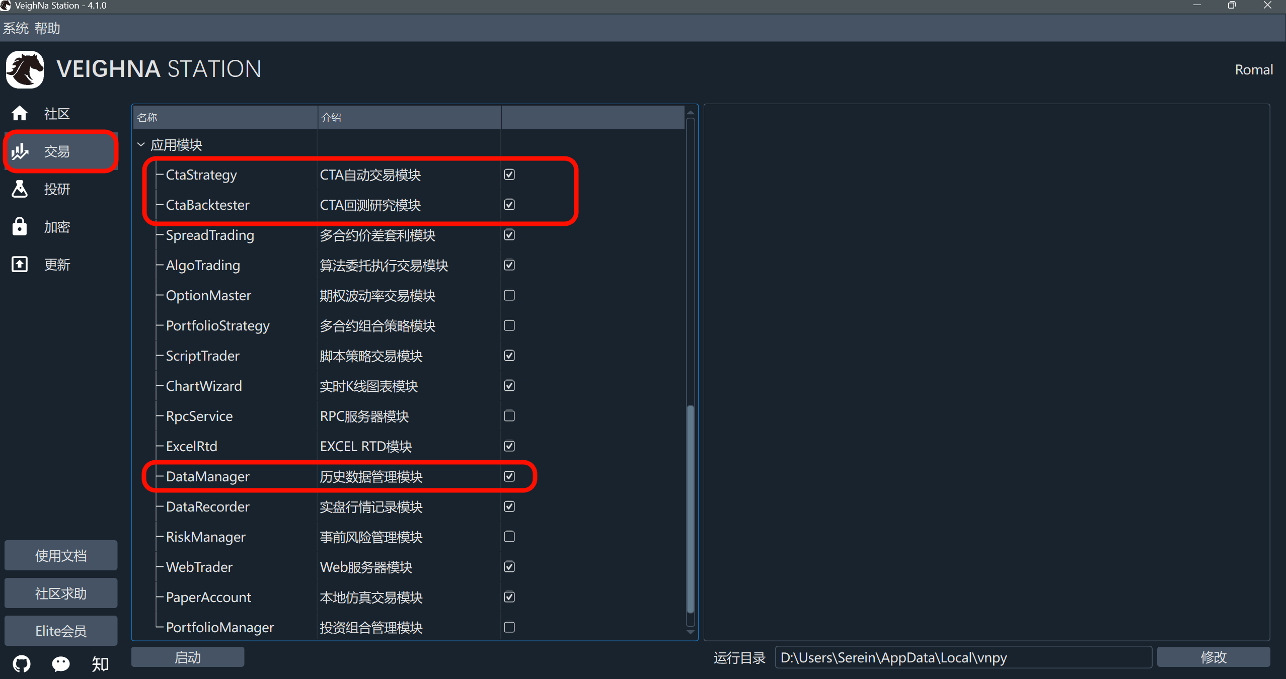 如果提示缺少什么python库,可以用在vnpy安装目录下的pip安装,例如D:\veighna_studio\Scripts\pip.exe